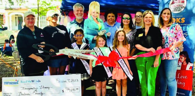 A ribbon cutting and check presentation for the Barbour County Dolly Parton’s Imagination Library was held on Saturday, October 7, during EufaulaFest. Julie Odom of the Alabama Partnership for Children presented a check to Allie Logan and Mitzi Clayton, co-coordinators for Barbour County.