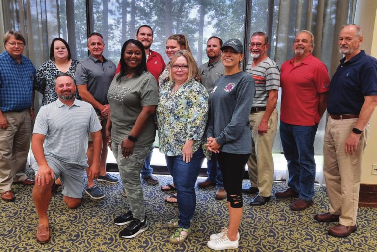 The new members of Leadership Barbour Class XVI held their retreat at Lakepoint State Park on July 26 and 27. Presenter Dick Hammond of Leadership on the Move led the group through team building exercises and explored leadership skills. One day per month during the next nine months the class will tour industries, medical facilities, government agencies, and educational facilities in Barbour County. Pictured front row are Daniel Hall, Juanita McKinnon, Madonna Wozny, and Kasey Sims. Shown on back row are Neil Kaminski, Jennifer Casteel, Kevin Heartsill, David Wellman, Cassandra McDonald, Ron Ratchford, Rick Thorne, Frank Culpepper, and Brad Mitchell.